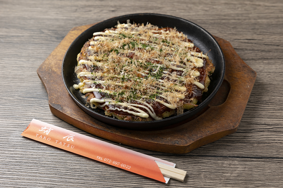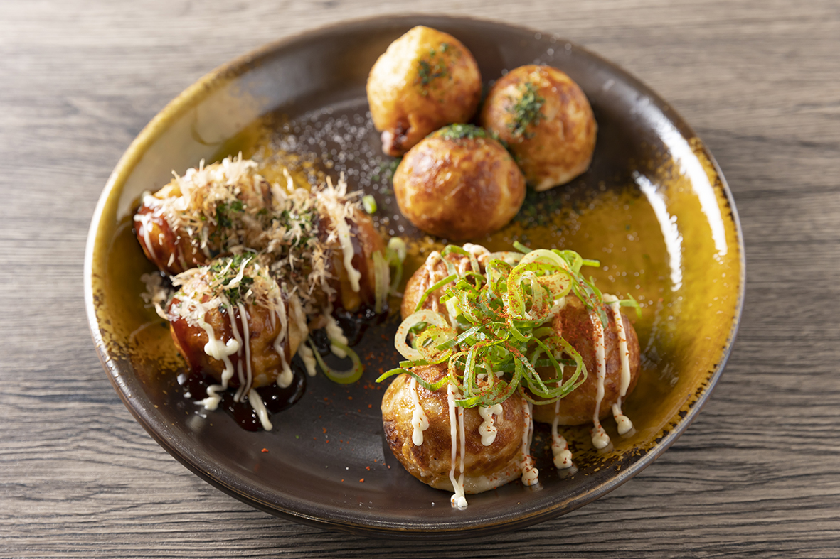 別業種を営むオーナーのお父さまが、社員の奥さんたちの働く場所と地域の皆さんに喜んでいただけるお店を、との思いで16年前にオープン。そして現オーナーも父の想いを継ぎ、“地元の方に愛される存在でありたい”と、ブタ玉1枚500円の安心価格を貫いている。同じく500円の「イカ玉」と、「ミックス」(600円)もラインナップしており、フワフワ生地&大きめ具材で満足感も申し分なし。テイクアウトはもちろんイートインも可能で、店内では1枚ずつを鉄板にのせてアツアツの状態をキープ。そのほか、「焼きそば」や「モダン焼き」、「オムそば」、「イカ焼き」もメニューに並んでおり、たこ焼きは「ソース マヨネーズ」や「だし マヨネーズ ねぎ 一味」など、12種類のソース&トッピングの組み合わせからお好みを選ぶことができる。