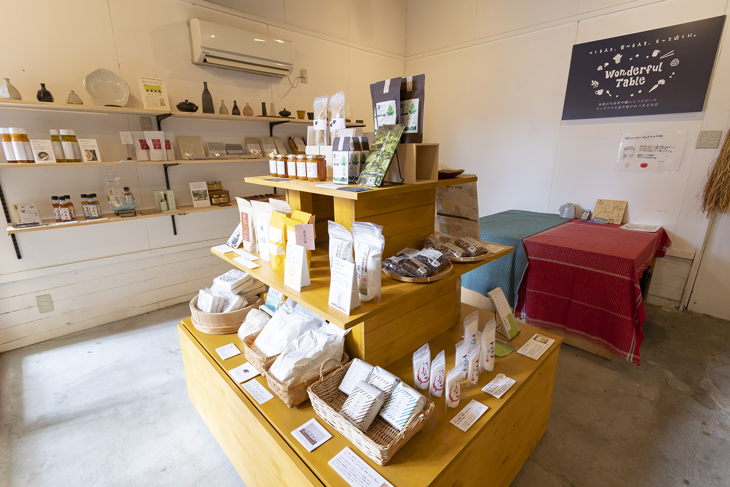 “つくる人と食べる人をつなげるお店”をコンセプトに、有機栽培のお米や、農家が作ったドレッシングやホットケーキミックス、果樹園が作ったジャムなど、生産者の顔が見える安心・安全な食材を全国からセレクト。ごはんのおともも人気があり、地元の漁師たちを元気づけようと開発された「きびなごふりかけ(700円)」(鹿児島県)は魚の風味とごまの香りが食欲をそそる。高校の授業の一環として製造された「鶴翔高校3年A組の豚味噌仕込(350円)」(鹿児島県)は、豚肉と味噌があったかごはんにぴったり。伝統製法の搾油所が地元の飛魚(あご)で作った「飛魚ラー油(756円)」(長崎県)はちょっぴり辛めでたまごかけごはんとの相性が抜群。生産者それぞれの思いをテーブルの上で感じながら味わって。