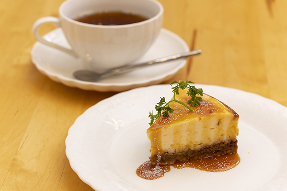食育アドバイザーと発酵食スペシャリストの資格を持つ、店主が手がけるランチプレートは、手作りの味噌や塩麹を使ったおかずが7種も登場する大充実の内容。メインのおかずは日替りなので、いつ行っても新しい味に出会えるのが魅力。さらに注目なのがこの冬、サラダに代わって登場した「せいろ蒸し温野菜サラダ」。ふたをあけると、カラフルな旬の野菜がお見えし、「サワークリームオニオン」など、選べる自家製たれをつけつつ、野菜本来のうま味や甘味を存分に味わうことができる。スープもこの日は「カリフラワーの味噌ポタージュ」といった具合に手の込んだ味わいが楽しめる。なおランチは「今月のケーキ&ドリンクset」(2,400円)でオーダーすることもでき、「キャラメルナッツチーズケーキ」など、国産小麦&よつ葉バターを使用したケーキの中から、お好みをチョイスすることができる。
