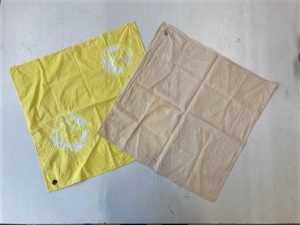 キッチンにあるスパイスや野菜を使い、輪ゴムや糸で「幸せの黄色いハンカチ」や「アンティーク風ハンカチ」を作る。