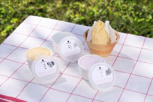セットにしたのは木工職人が一つひとつ丁寧につくりあげた吉野桧のデザートカップで、作り手たちのぬくもりを感じる、冷たくておいしいセット。