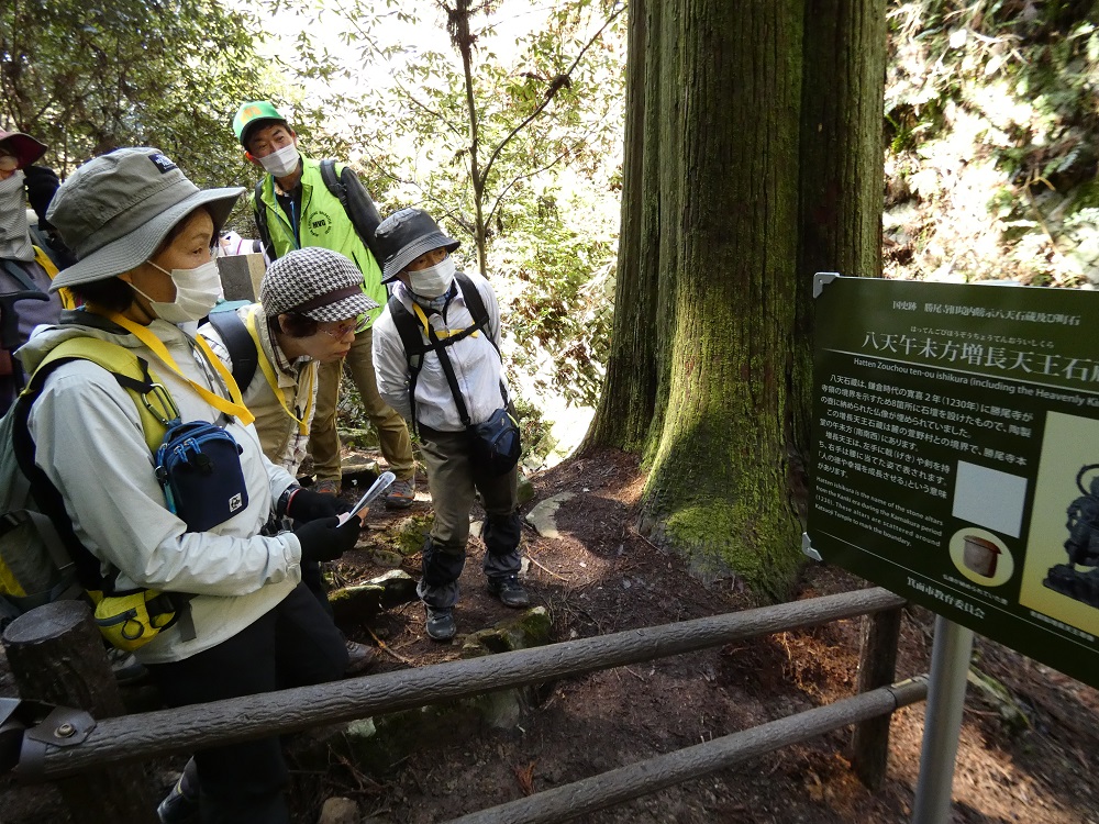 ウォークトライアルには、箕面の山々を熟知している箕面観光ボランティアガイドやボランティアスタッフが同行し、8カ所ある石蔵のうち4カ所もしくは2カ所を参加者と一緒に巡る。石蔵や各スポットの歴史、自然について箕面観光ボランティアガイドから詳しくレクチャーしてくれる。