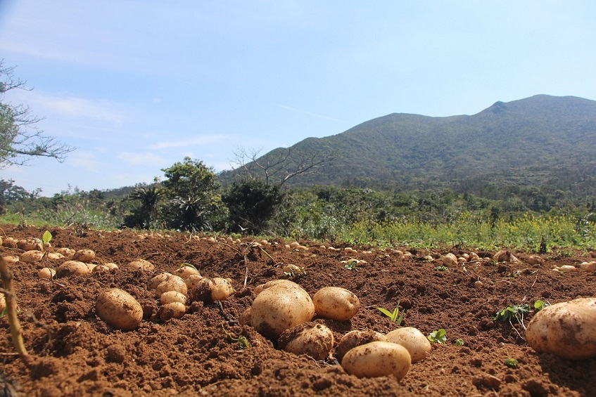 冬のシーズンになると、畑のあちこちで新じゃが芋の収穫が行われる。