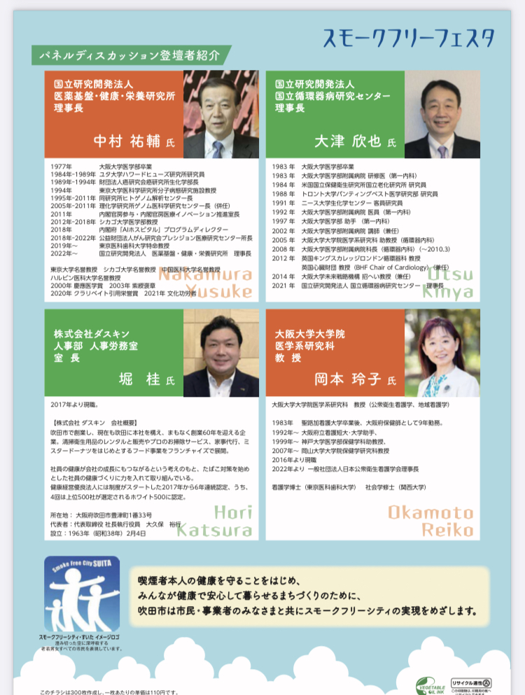 また、社内でたばこ対策を推進する株式会社ダスキンと吹田市長を交え、パネルディスカッションを実施。