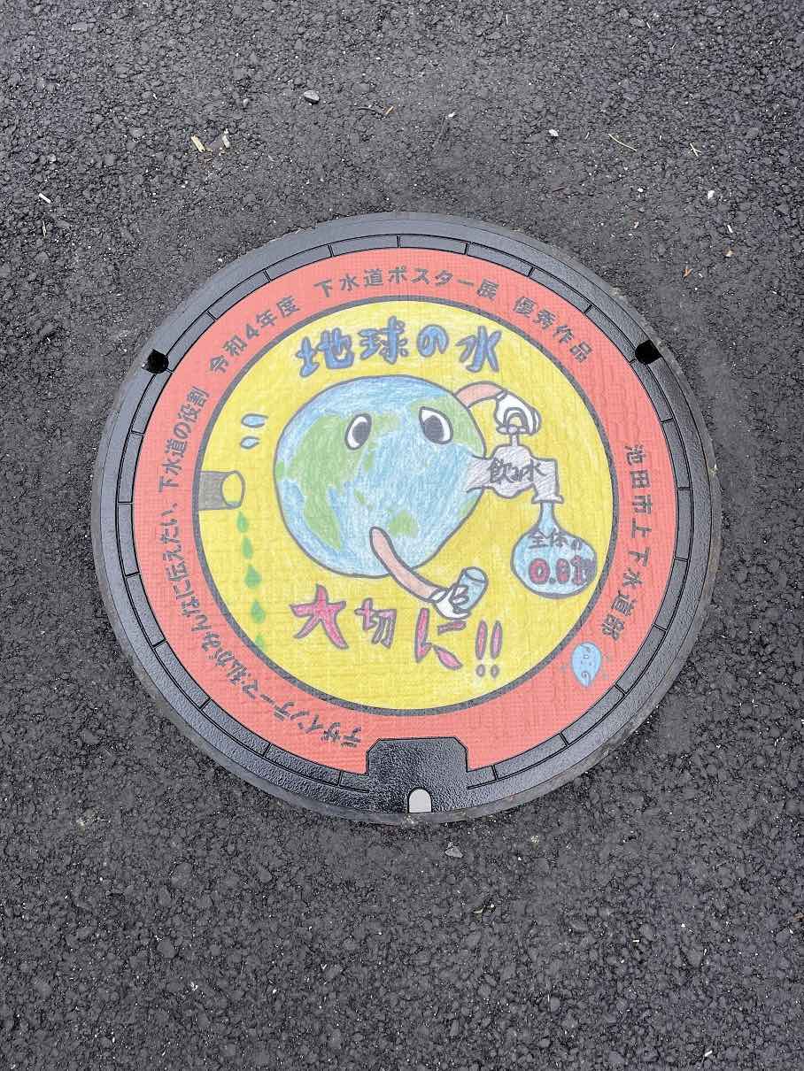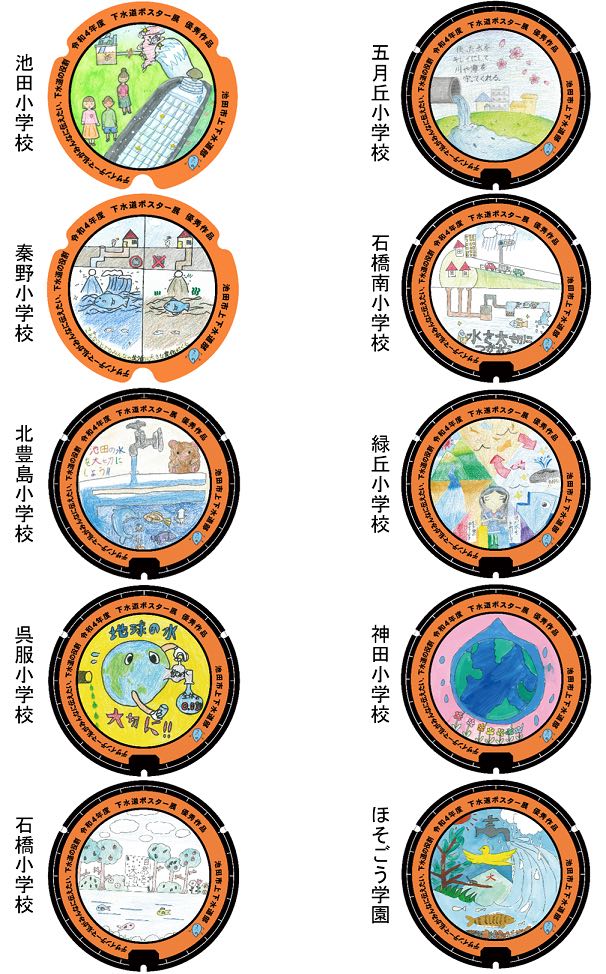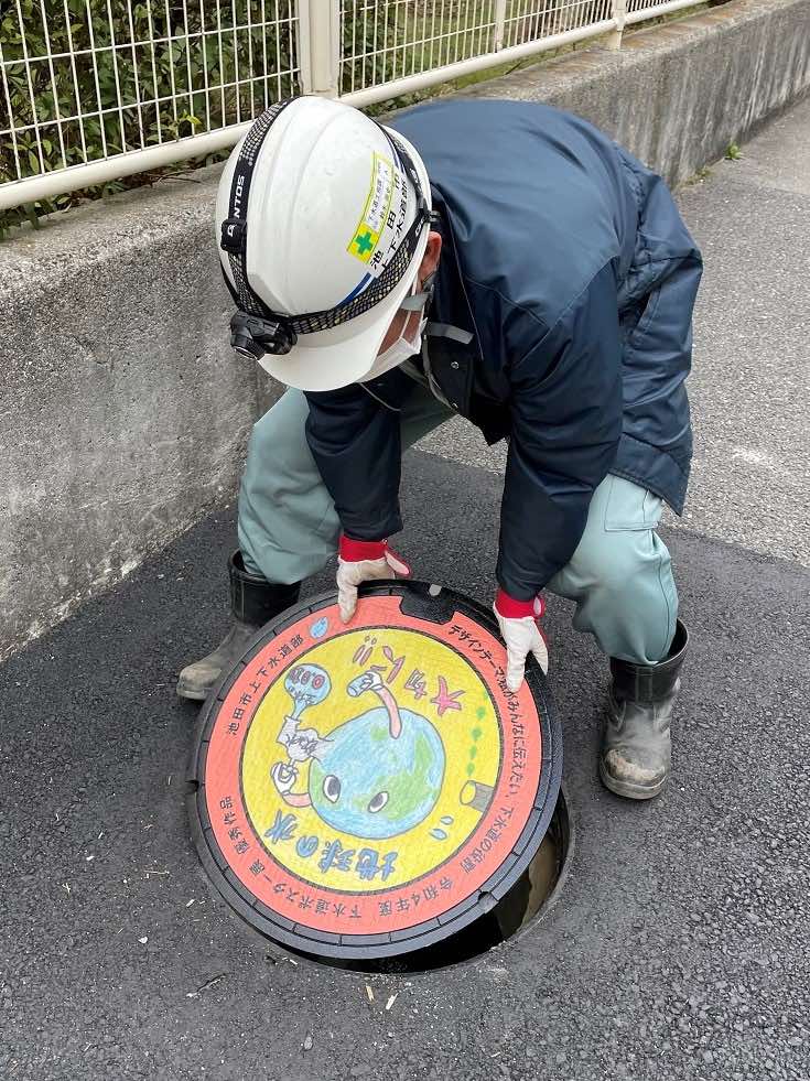 1月30日、池田市は市内の児童がデザインしたマンホール蓋を市内 10 カ所に設置した。設置されたマンホール蓋は、昨年「下水道の日(9月10日)」の企画として開催された「デザインマンホール ポスター展」の優秀作品に選ばれた作品をプリントしたもの。