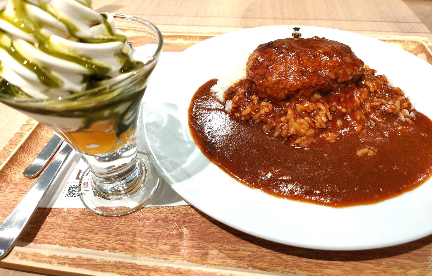 何と+110円でドリンクかパフェが頼めるという嬉しい特典が!これはもうガッツリ行こうと思い抹茶パフェにしました。