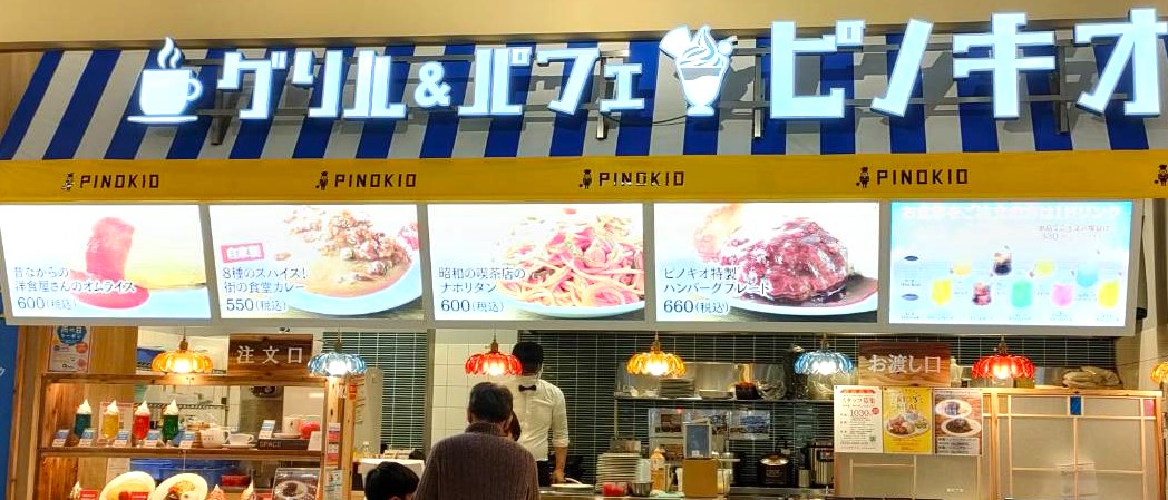 みのおキューズモールのフードコート内に「グリル&パフェピノキオ」が1月27日にOPEN。
