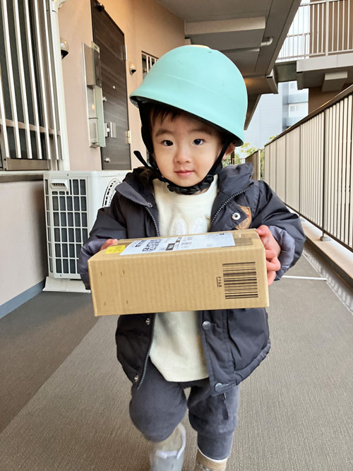 箱の上でピース!空箱の上でポーズをとってくれました。