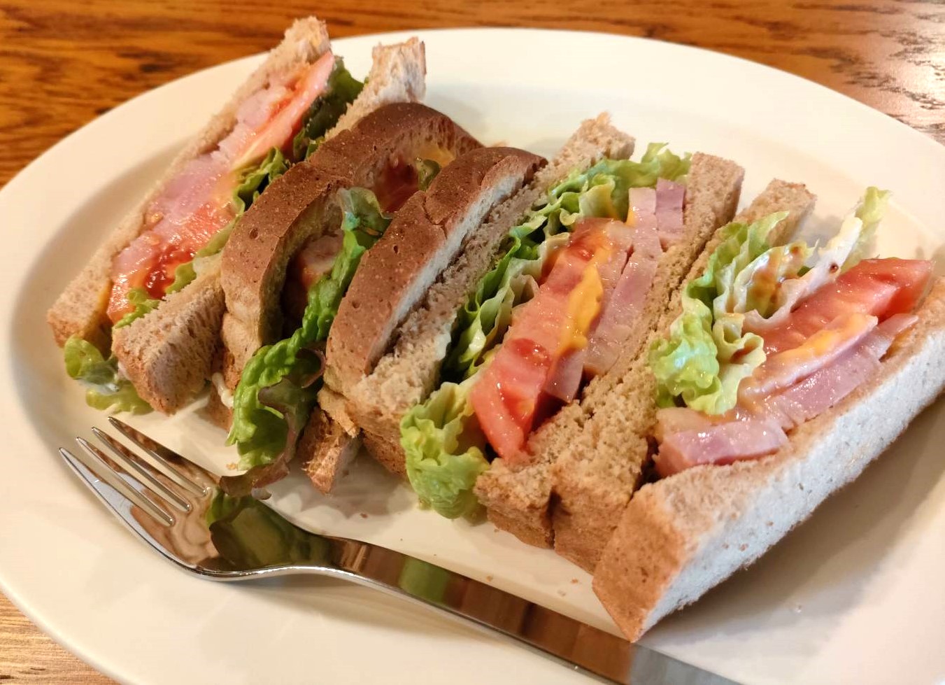 「BLTCサンド」は厚切りベーコン・レタス・トマト・チェダーチーズをミネラルたっぷりの胚芽パンでサンドしてます。胚芽パンは美味しくないイメージがありましたが、もちもちで美味しい☆具材もたっぷりで食べ応え十分!