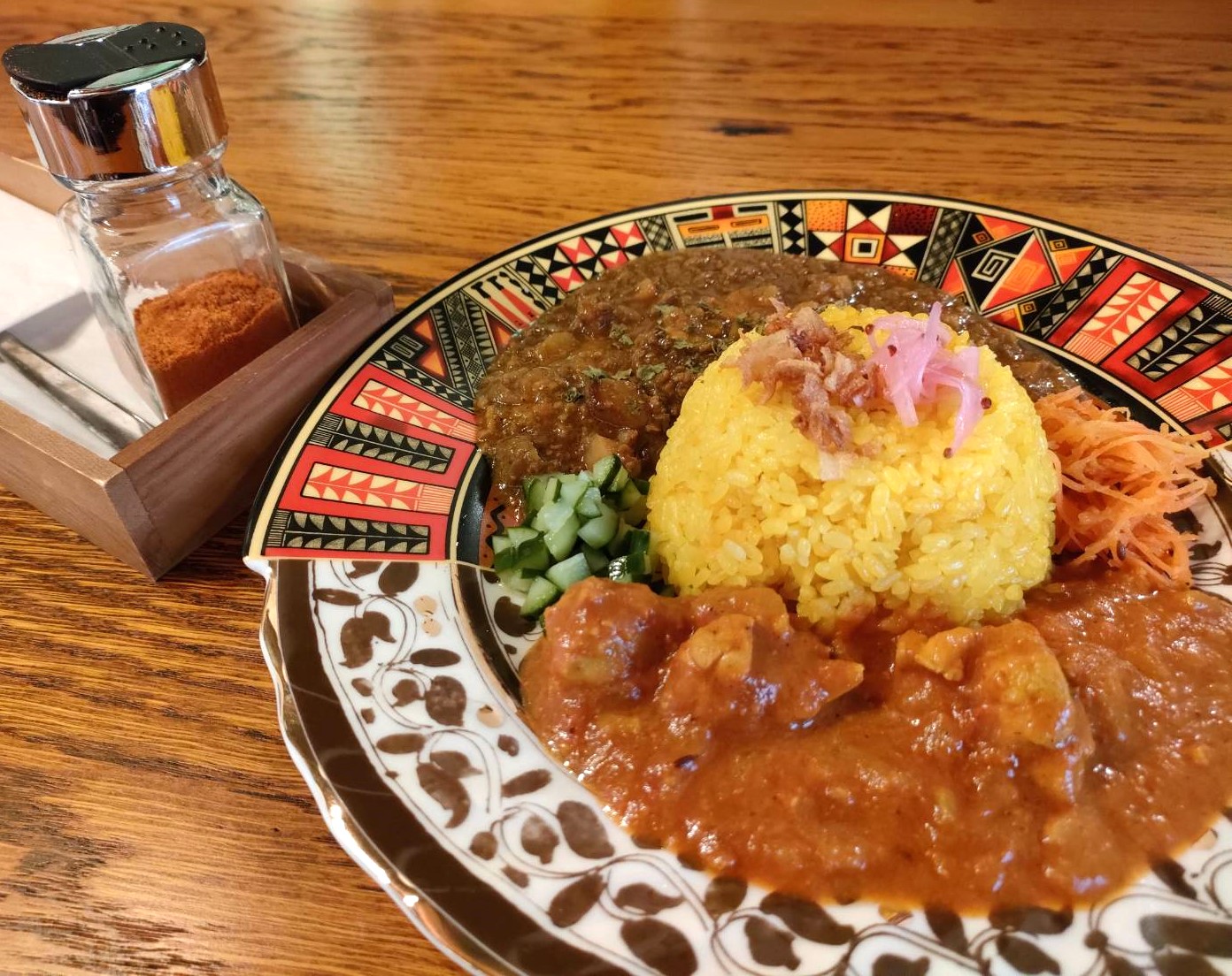 「あいがけカレー」は「定番チキンカレー」と「季節のカレー」の両方が楽しめます。スパイスと塩をベースに作られた「定番チキンカレー」とはレンコン、まいたけ、八丁味噌が入ったマイルドな冬季限定の「冬のキーマカレー」はどちらも辛みがなく辛いのが苦手な人も安心。ん~どっちも美味しい☆
