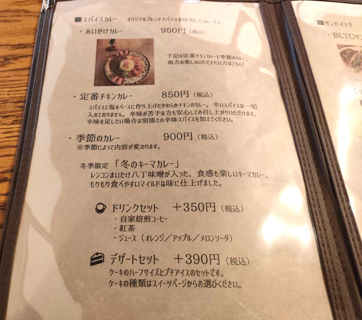 今回は「あいがけカレー」と「BLTCサンド」を注文。