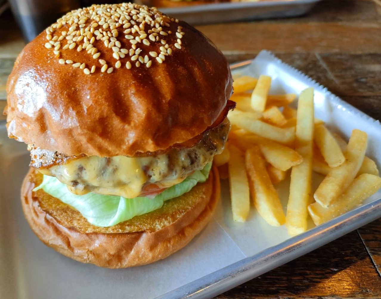 「BACON CHEEZE BURGER/1450円」は100%BEEFパティ、ベーコン、チェダーチーズが入ったTHEアメリカンバーガーで食べ応え十分!