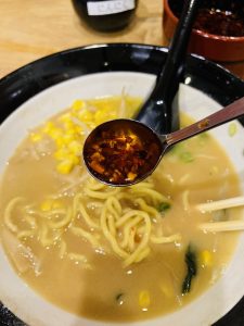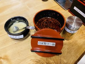 みそたつ特製八味、自家製ラー油、ニンニクの味変調味料を発見。