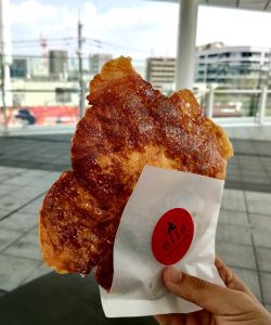 折角なので、電車でも眺めながら頂きます(^^)「pariワッサン」がカリサクで美味しい~♪パンではなくデザートで甘めのカフェオレと合います。空ビンはお店の前の箱へ。
