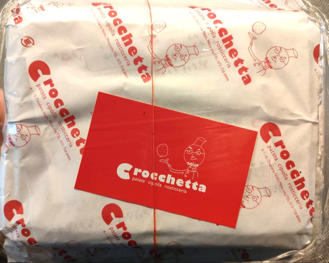 「クロケッタ」は箕面市小野原に14年前からあるコロッケ屋さんで、人気でいつも混んでいるので中々買いに行けないんです( ;∀;)それが待ち時間気にせず気軽に買えるようになるなんて☆ということで早速買ってみました。冷凍コロッケ8個入りで1000円のみの販売です。