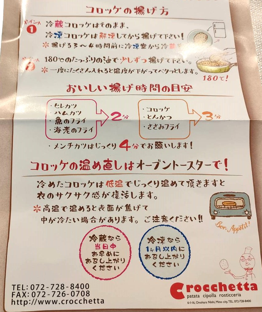 中には揚げ方も入ってます。私はお弁当用に解凍せず揚げてしまいました。問題なかったのですが、ちゃんと解凍してからの方が崩れる心配ないですよね。