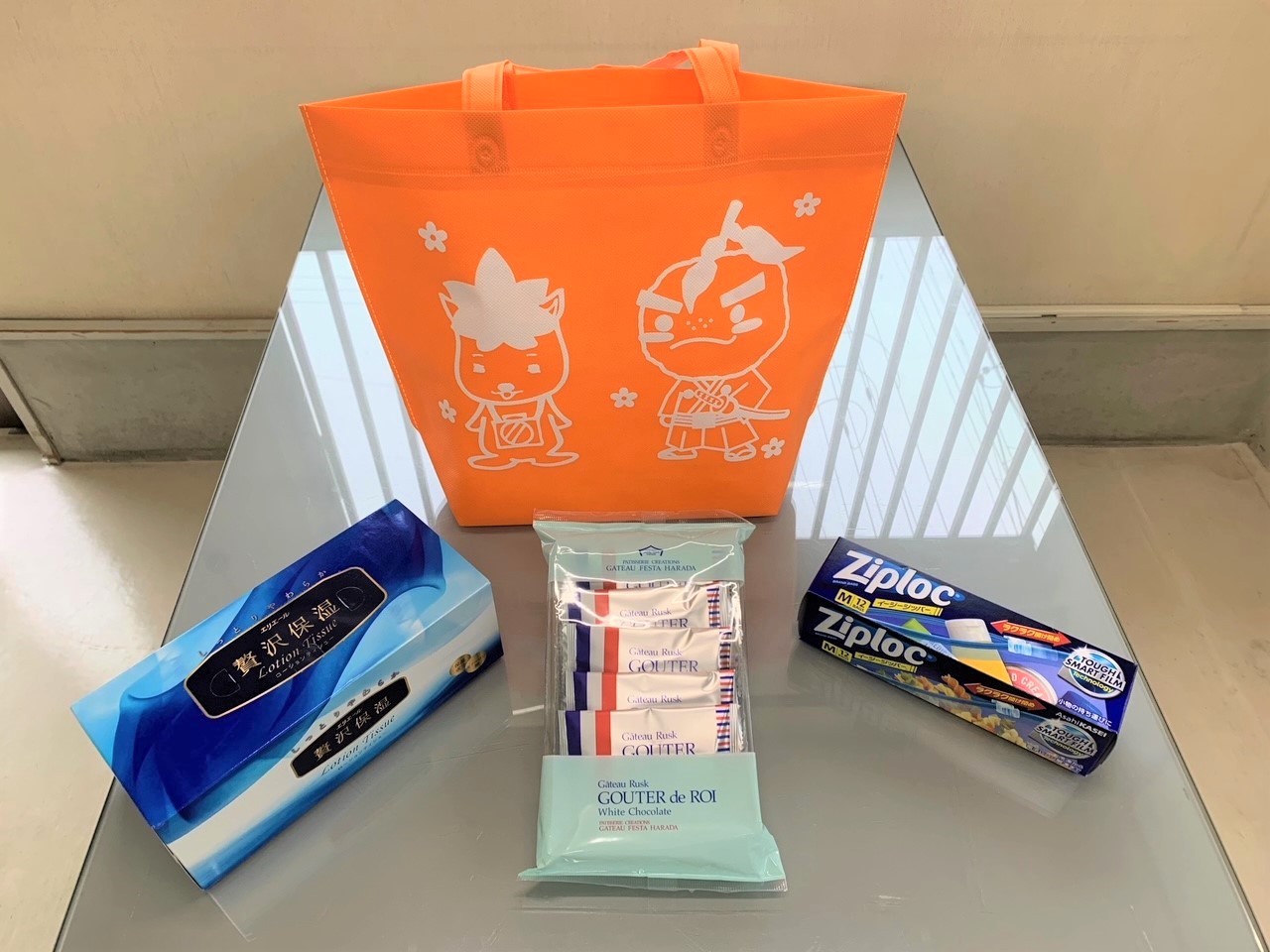 ●記念品・・・滝ノ道ゆずる・モミジーヌイラスト入りエコバッグ、ガトーフェスタハラダグーテ・デ・ロワホワイトチョコレート等(数量限定、各開催場所100個 ※みのおキューズモールは200個)