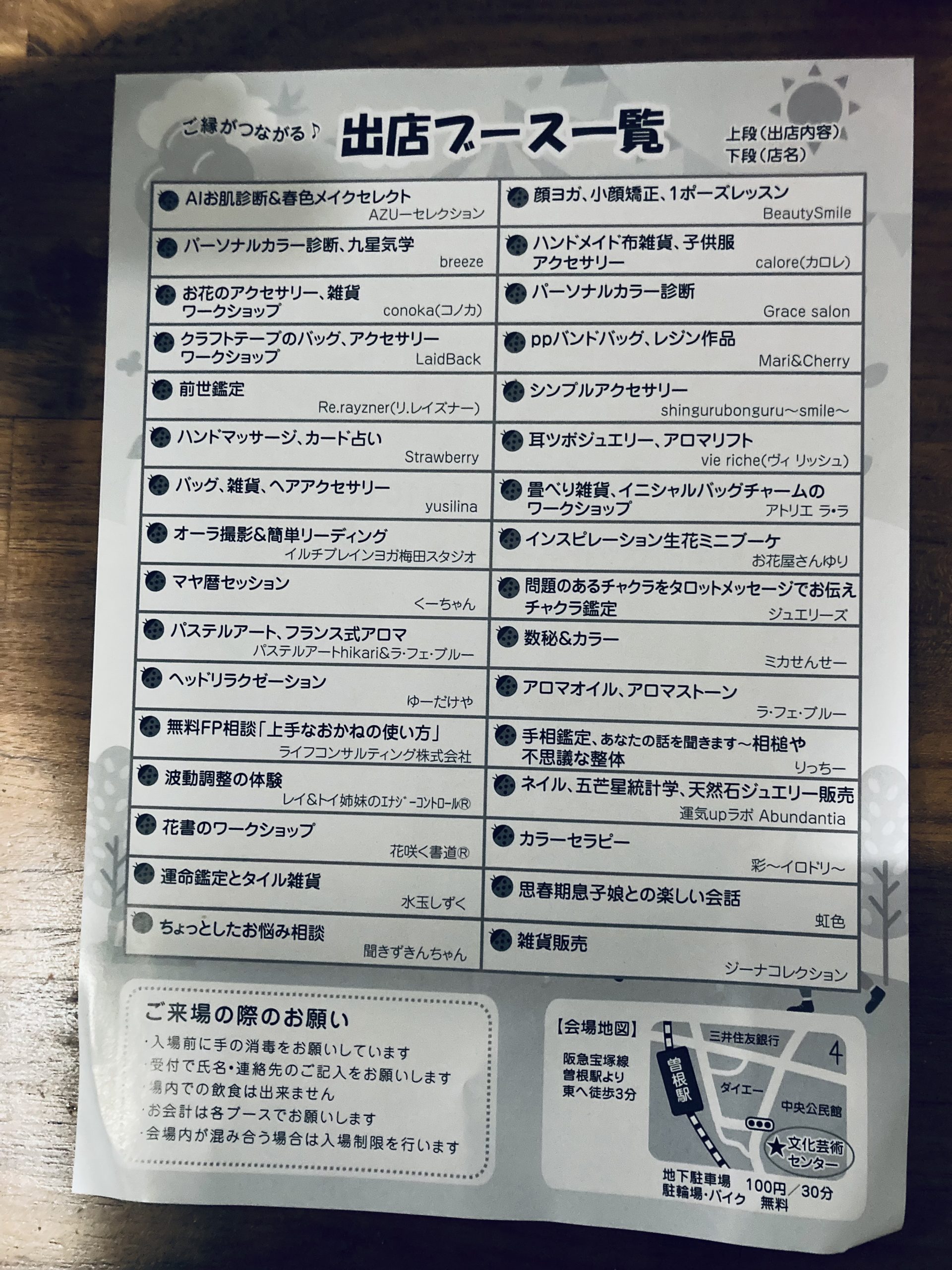 入場は無料で、雑貨やコスメ、リラクゼーションの施術など30店以上が出展する。
