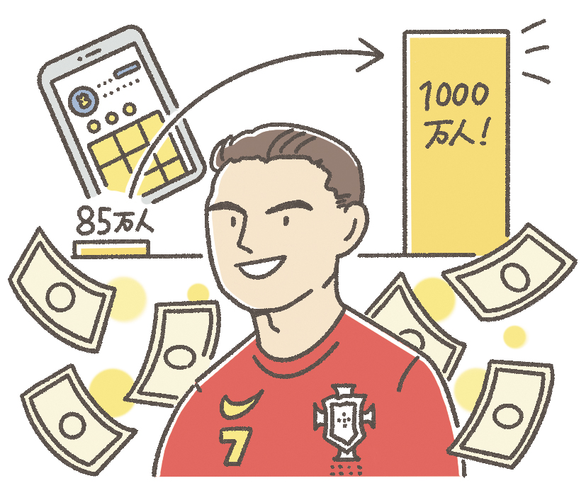 SNSにもその影響は顕著に出ていまして、ロナウドが加入する前のアルナスル公式Instagramのフォロワーは約85万人。ロナウド加入後は急激に伸び1000万人超え!1人の選手が移籍しただけでこれだけの影響力!ちなみに年俸、どれくらいだと思いますか?